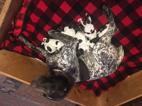We are very excited about these pups from (Mo and Shiloh). These pups will be wonderful companions and loving members of your family. They will be intelligent dogs with a strong natural inctinct to hunt. They come from close working dogs that are easy to train. Tails are docked, dewclaws removed, puppy shots and worming up to date.